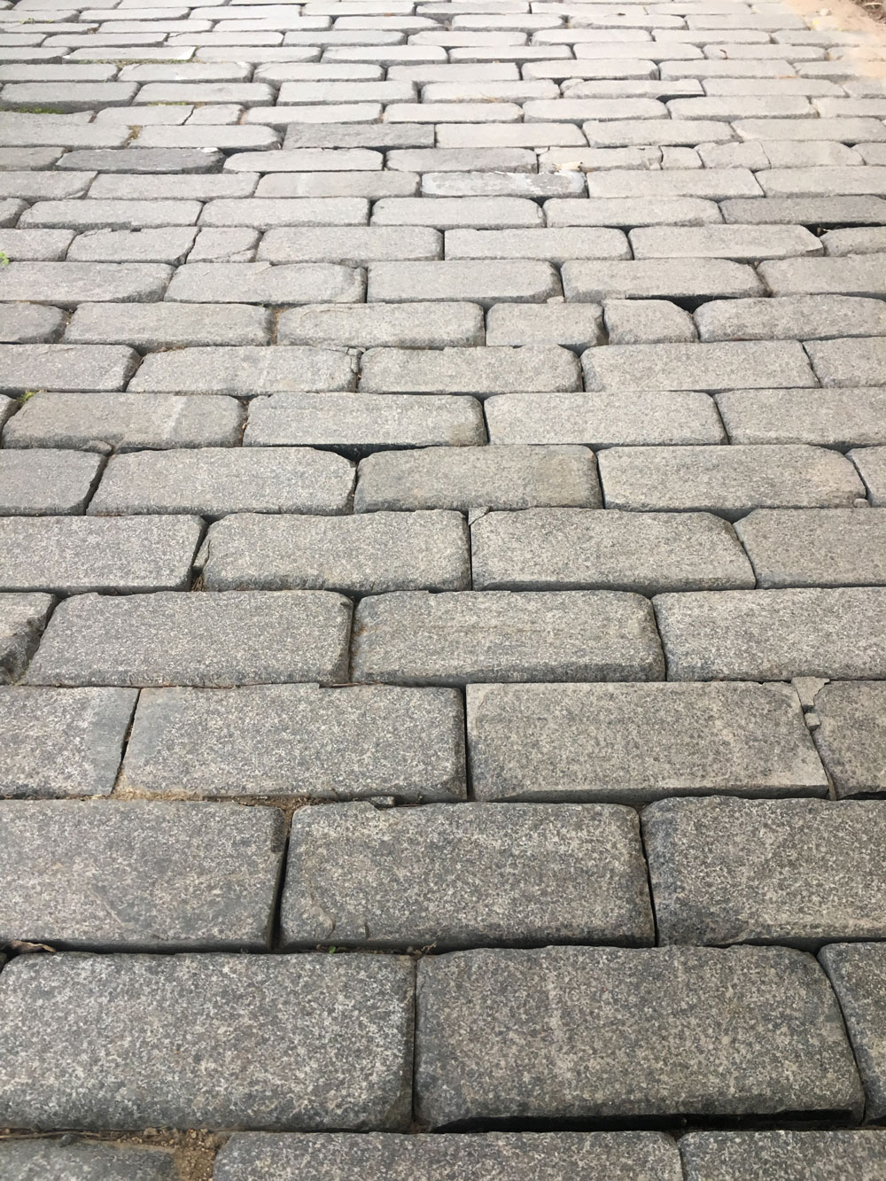 Укладка с применением данного материала является одной из разновидностей мостовой, выложенной плоскими брусками приблизительно одинаковой формы и размера.