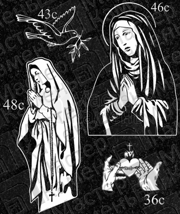 Ритуальная символика с ангелочками очень хорошо смотрится верхней части камня, над фотографией, а орнамент со свечой лучше расположить по низу. Прямоугольные рамочки можно использовать как вокруг самой фотографии, так и по краю камня.