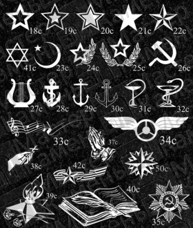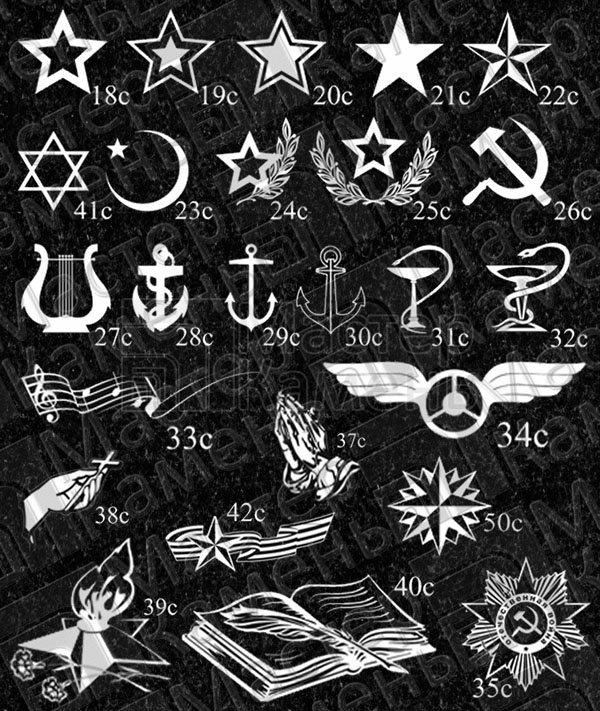Ритуальная символика с ангелочками очень хорошо смотрится верхней части камня, над фотографией, а орнамент со свечой лучше расположить по низу. Прямоугольные рамочки можно использовать как вокруг самой фотографии, так и по краю камня.