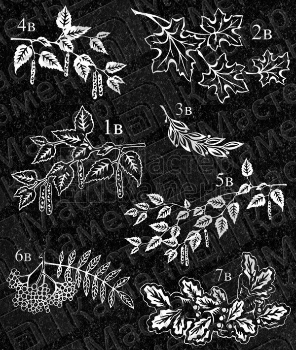 В оформлении надгробных сооружений очень часто используются изображения цветов, ветвей, деревьев и пр. Представленные в каталоге варианты являются наиболее часто используемыми. По Вашему желанию можно награвировать любые другие цветы, ветви или композиции. Стоимость будет зависеть от размера такого изображения. Так же возможно сделать цветной вариант любой картинки.