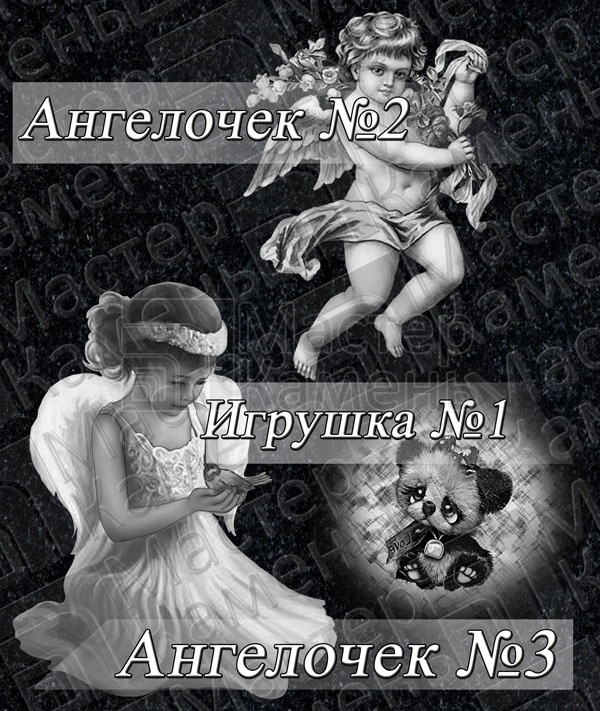Ритуальная символика с ангелочками очень хорошо смотрится верхней части камня, над фотографией, а орнамент со свечой лучше расположить по низу. Прямоугольные рамочки можно использовать как вокруг самой фотографии, так и по краю камня.