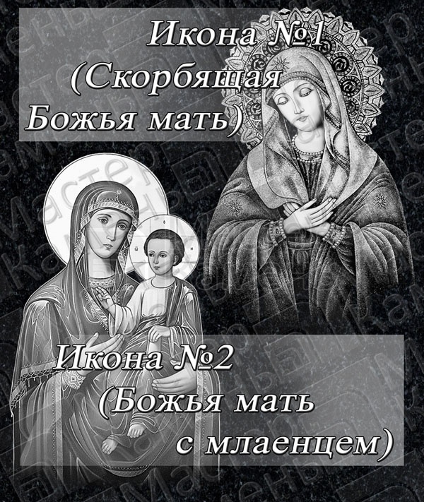 Очень часто на обратной стороне памятника изображают икону или ангела. Такая картинка смотрится очень гармонично и дополняет композицию в целом. Под иконой обычно пишут слова молитвы или эпитафию.